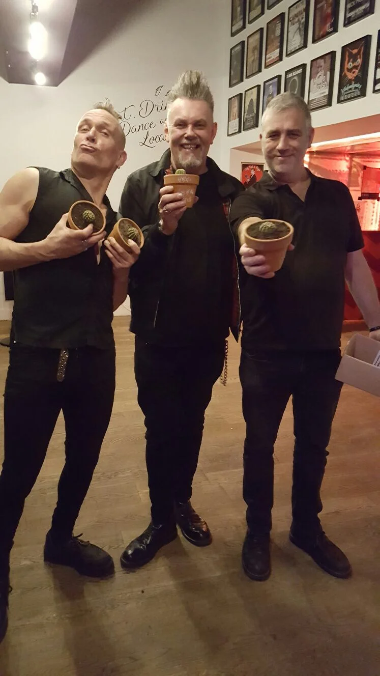 Wonderful band The Membranes proudly displaying their cacti post-gig in Komedia in Bath last month. Thanks to Sarah for the snap. Left to right: John Robb, Pete Byrchmore & Rob Haynes. Take a listen to their amazing 2015 album: Dark Matter/Dark Energy