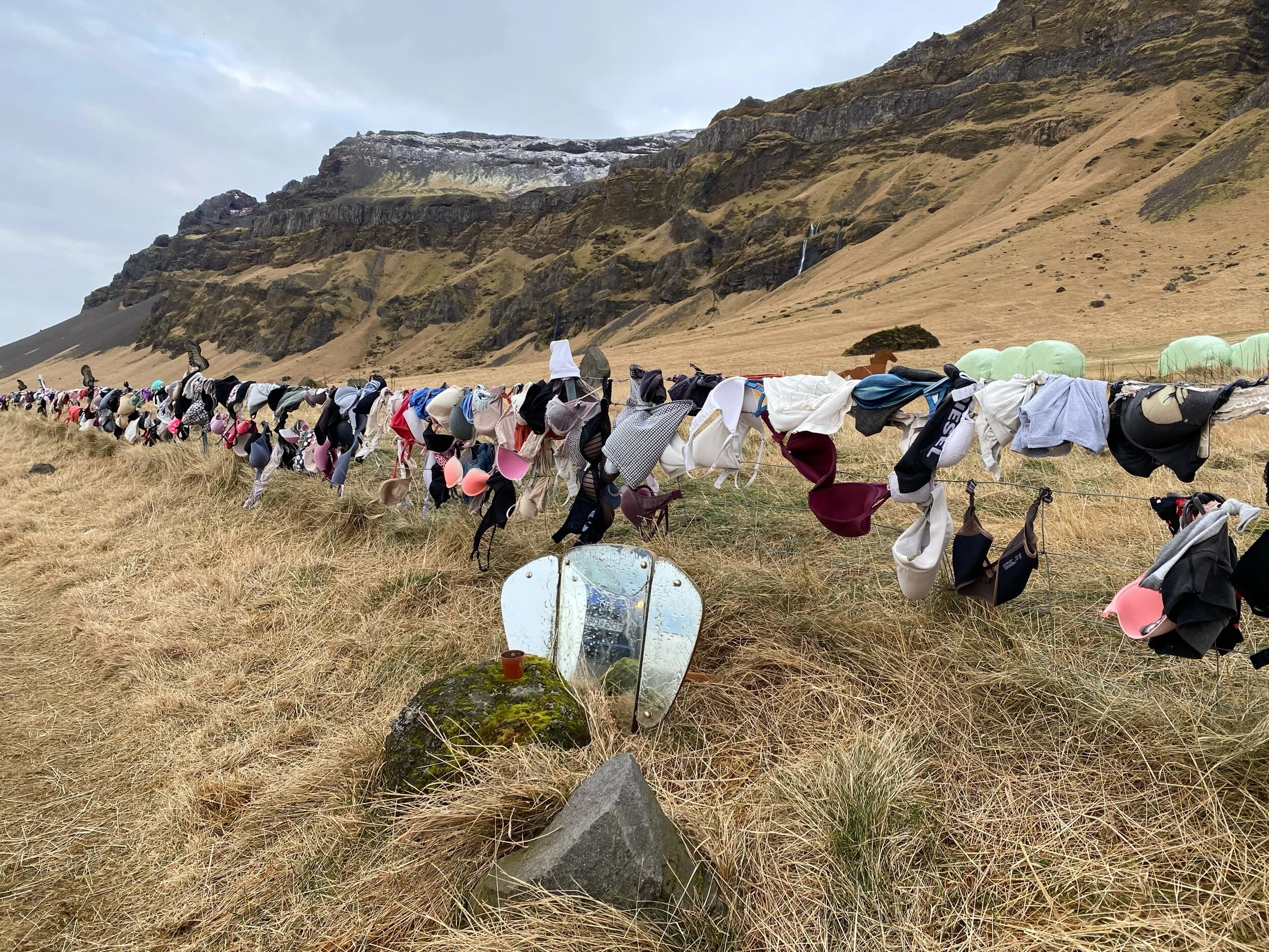 Under Steinunn Thórainsdóttir’s sculpture in Reykjavik