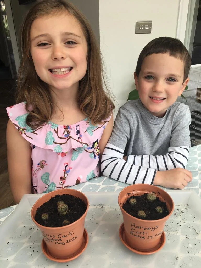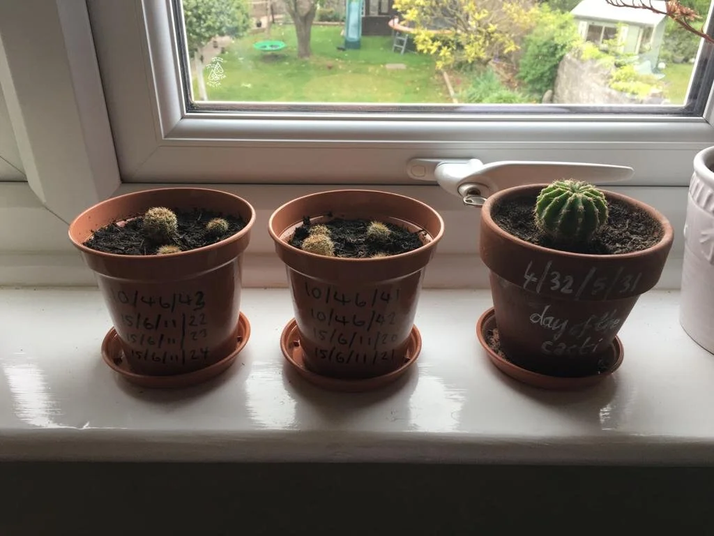 Eight little cacti arrived safely in the post and it’s the start of a little cacti collection for Erin and Harvey.