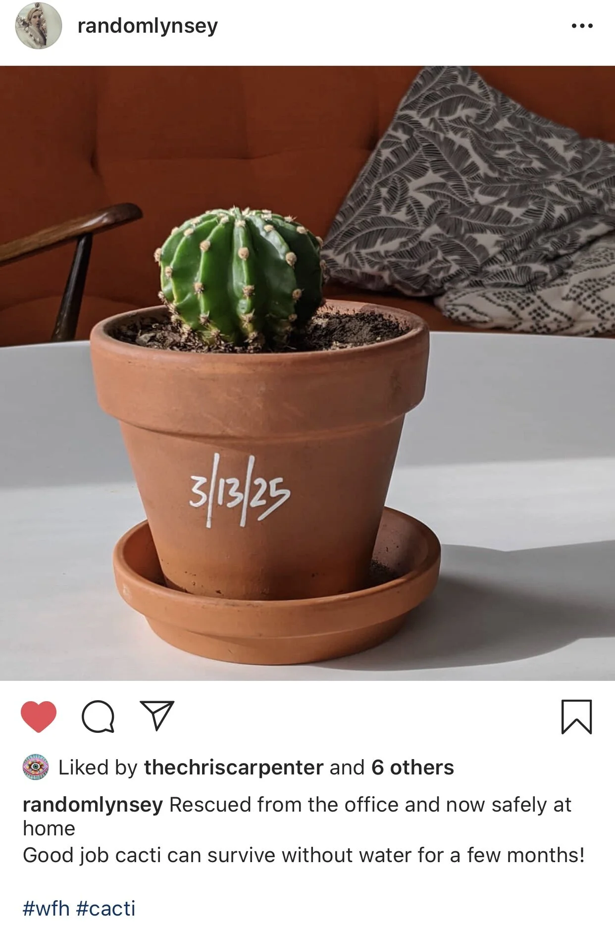 Lynsey nipped into the Cynnal Cymru offices to rescue her cactus and bring it home earlier this week. Reminder to us all that cacti DO need water!